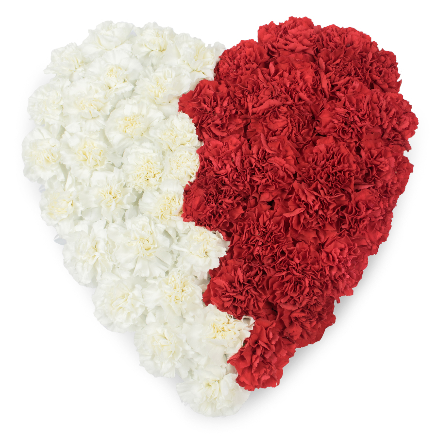 Our delicate heart-shaped arrangement features a harmonious mix of white and red carnations, perfect for expressing heartfelt sympathy. Each bloom is hand-selected to ensure freshness and exquisite quality.